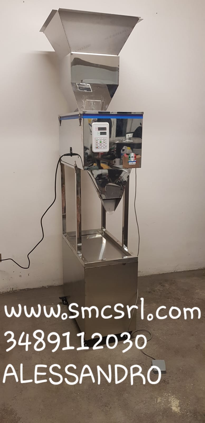 Dosatore a peso di legumi, spezie, pasta, riso, granelle varie, farine scorrevoli ecc.. basta impostare il dosaggio desiderato sul display e il dosatore provvederà in automatico a pesare e dosare il vostro prodotto dentro buste preformate o vaschette. Presenta un contapezzi a display dispone di un sistema di vibrazioni autoregolabili e pedalina di consenso scarico. Completamente in acciaio inox 304 aisi smontabile con semplici clip dunque facile da pulire e eventualmente separarla dal carrello e posizionarla su un banco ad altezza desiderata. Per info: 3489112030 Alessandro SMC UDINE - Possibilità di noleggio a lungo termine! Disponibili anche usati fieristici.