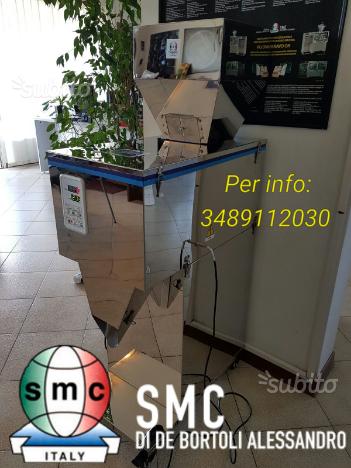 Dosatore a peso di legumi, spezie, pasta, riso, granelle varie, farine scorrevoli ecc.. basta impostare il dosaggio desiderato sul display e il dosatore provvederà in automatico a pesare e dosare il vostro prodotto dentro buste preformate o vaschette. Presenta un contapezzi a display dispone di un sistema di vibrazioni autoregolabili e pedalina di consenso scarico. Completamente in acciaio inox 304 aisi smontabile con semplici clip dunque facile da pulire e eventualmente separarla dal carrello e posizionarla su un banco ad altezza desiderata. Per info: 3489112030 Alessandro SMC UDINE - Possibilità di noleggio a lungo termine! Disponibili anche usati fieristici.